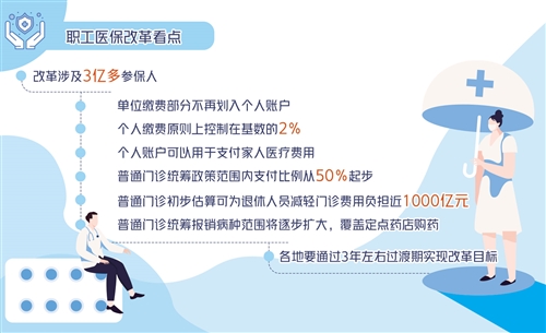 近日,國務(wù)院辦公廳印發(fā)了《關(guān)于建立健全職工基本醫(yī)療保險門診共濟保障機制的指導(dǎo)意見》。意見提出,將門診費用納入職工醫(yī)保統(tǒng)籌基金支付范圍,改革職工醫(yī)保個人賬戶,建立健全門診共濟保障機制。