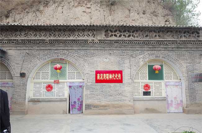 侯秀珍居住的窯洞墻面,貼著“南泥灣精神代代傳”的牌匾。