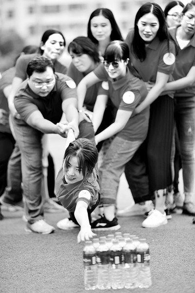 安徽省合肥市琥珀名城小學(xué)教師們參加特色拓展訓(xùn)練,在團隊協(xié)作中凝聚智慧力量。熊偉攝/光明圖片