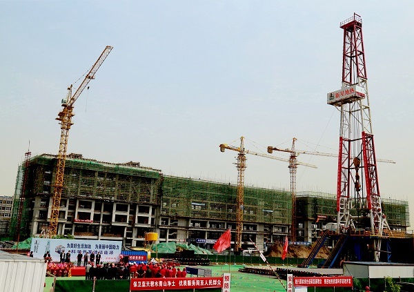 西安市周至縣錦華苑地?zé)峒泄犴?xiàng)目開鉆現(xiàn)場(chǎng)