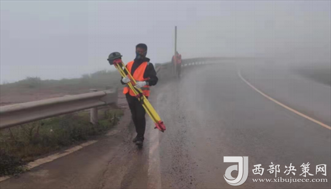 在進行二等水準測量時,進出口聯(lián)測距離為50千米,不僅要面對國道上龐大的車流量,還要面對盤山路的大坡度、大霧的低能見度、突然來襲的雨雪天氣以及雨雪過后的低溫。二等水準的測量方式是步行,因為是高原,所以體力消耗特別大,山里又沒有吃飯的地方,大家只能靠隨身攜帶的面包、開水保證體能。然而即使面對如此困難的環(huán)境,大家依然不忘初心,按時完成了復測任務。