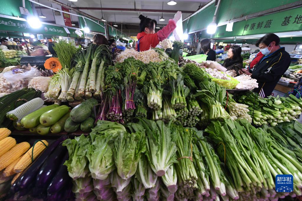 11月10日,在廣西南寧市濱湖路一家農(nóng)貿(mào)市場(chǎng),人們?cè)谶x購(gòu)蔬菜。新華社記者 陸波岸 攝