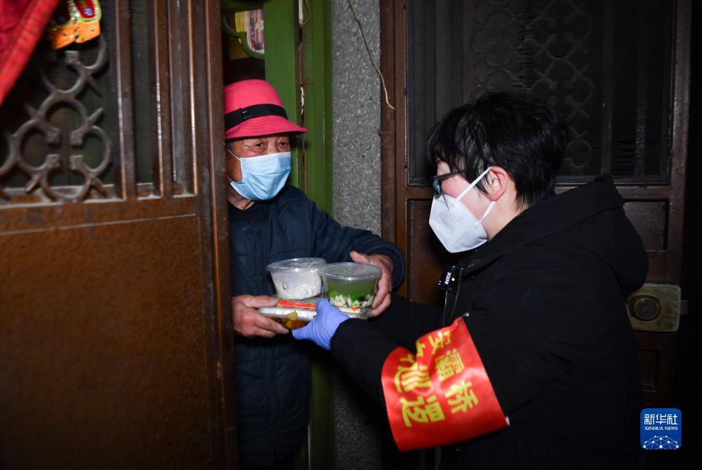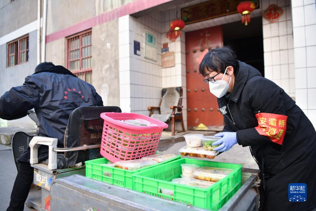 1月12日,三家村工作人員根據(jù)前期摸排情況逐戶(hù)派送午餐。新華社記者 張博文 攝