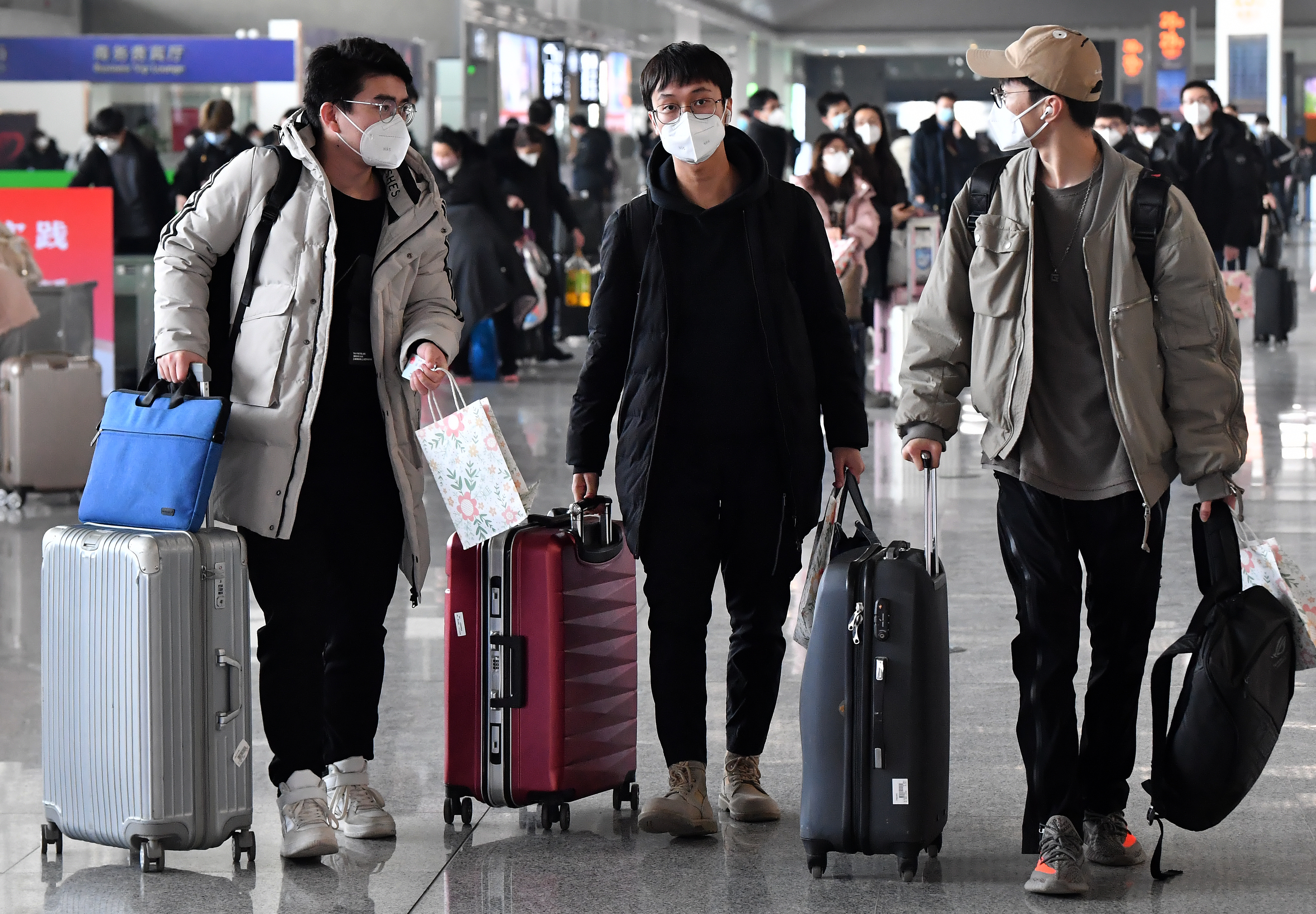 1月16日,西安北客站,離校返鄉(xiāng)的西安高校學生進入候車大廳。新華社記者 劉瀟 攝