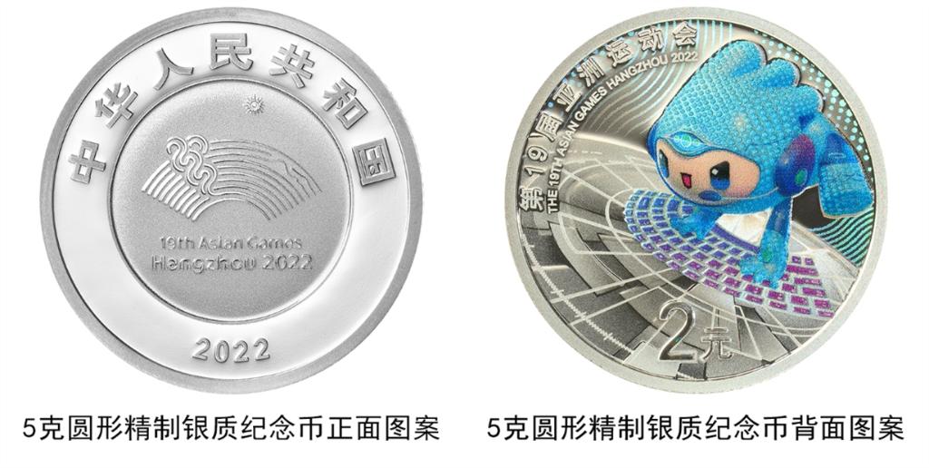 5克圓形銀質紀念幣背面圖案為第19屆亞洲運動會吉祥物電子競技運動造型,輔以互聯網科技符號、跑道等元素裝飾組合設計,并刊“第19屆亞洲運動會”等字樣。該紀念幣含純銀5克,最大發(fā)行量10萬枚。