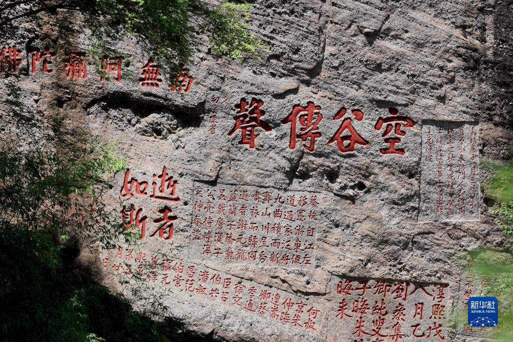 武夷山丹霞石壁上的摩崖石刻(6月6日攝)。新華社記者 姜克紅 攝