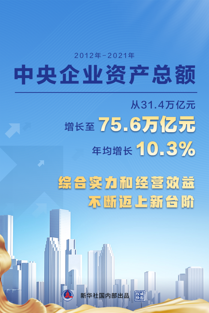 中央企業(yè)資產(chǎn)總額從2012年底的31.4萬億元增長(zhǎng)至2021年底的75.6萬億元