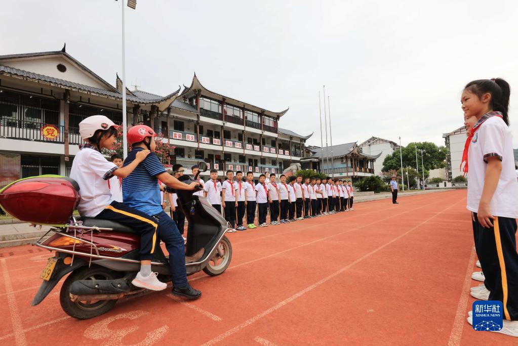 9月1日,湖南省張家界市武陵源區(qū)索溪峪中心學校的學生在上“交通安全第一課”。新華社發(fā)(吳勇兵 攝)