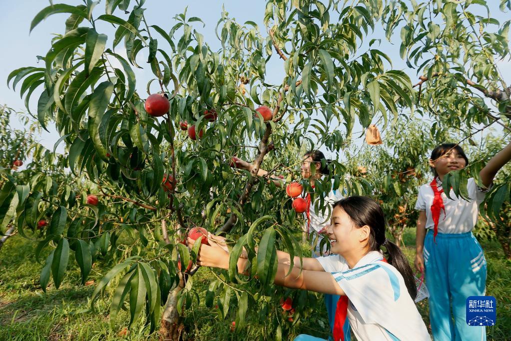 9月1日,山東青島藍谷高新區(qū)東皋埠小學的學生在即墨區(qū)靈山街道沃家泊子村潤豐農(nóng)場體驗田間課堂。新華社發(fā)(梁孝鵬 攝)