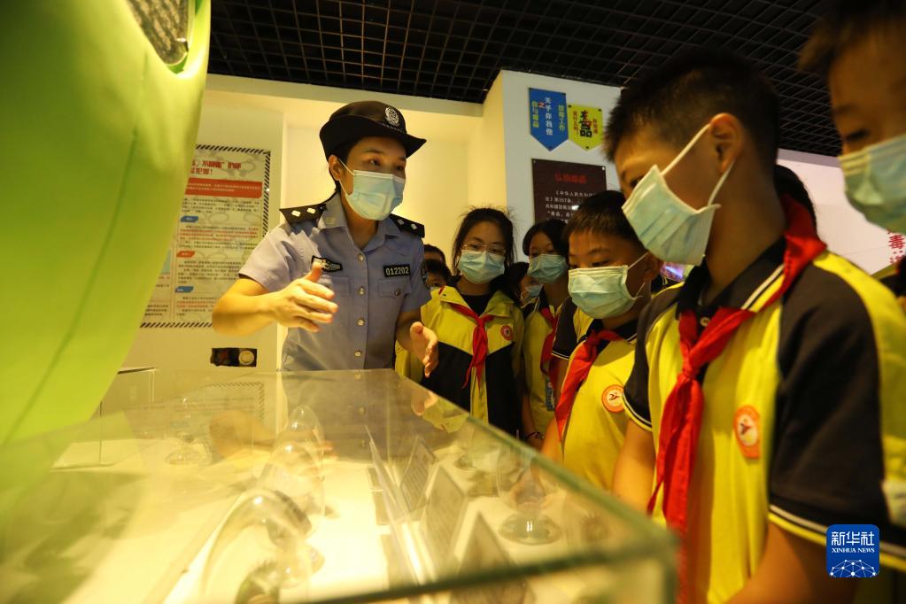 9月1日,在貴州省赤水市天臺學校,民警給學生講解新型毒品相關(guān)知識。新華社發(fā)(王長育 攝)