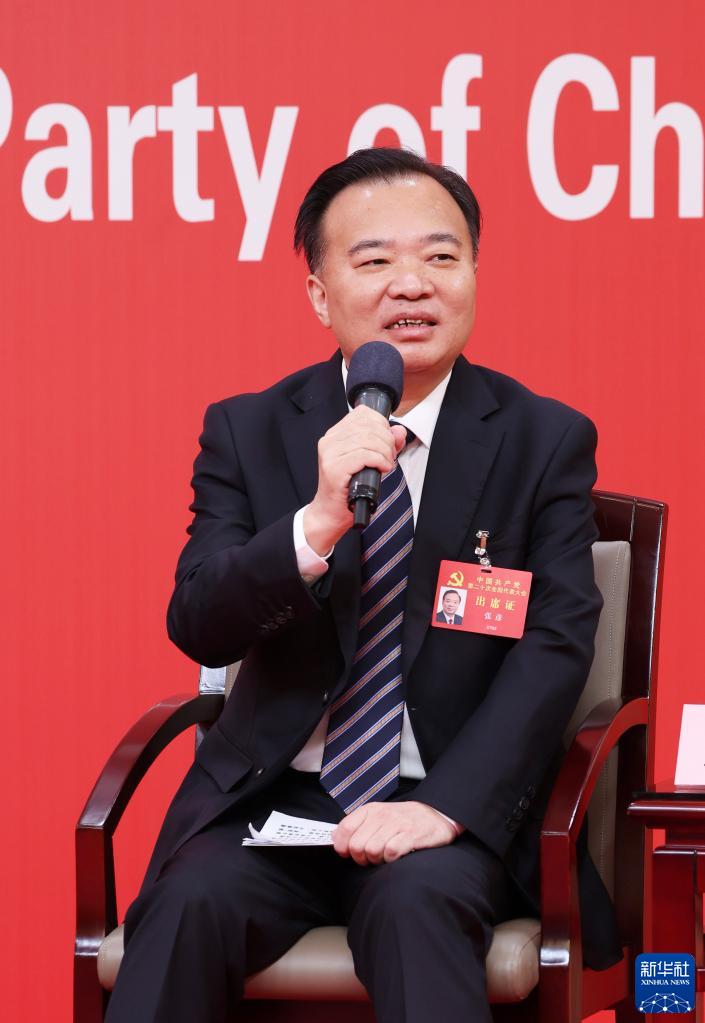 10月18日,中國共產(chǎn)黨第二十次全國代表大會新聞中心舉行集體采訪。黑龍江、上海、江蘇、浙江、安徽、福建、江西代表團新聞發(fā)言人出席,介紹代表團學習討論二十大報告情況,并回答記者提問。這是福建省委常委、宣傳部部長張彥在回答記者提問。新華社記者 張玉薇 攝