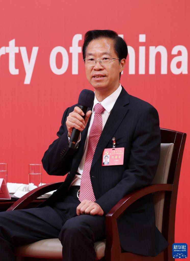 10月18日,中國共產(chǎn)黨第二十次全國代表大會新聞中心舉行集體采訪。黑龍江、上海、江蘇、浙江、安徽、福建、江西代表團新聞發(fā)言人出席,介紹代表團學習討論二十大報告情況,并回答記者提問。這是江西省委常委、宣傳部部長莊兆林在回答記者提問。新華社記者 張玉薇 攝