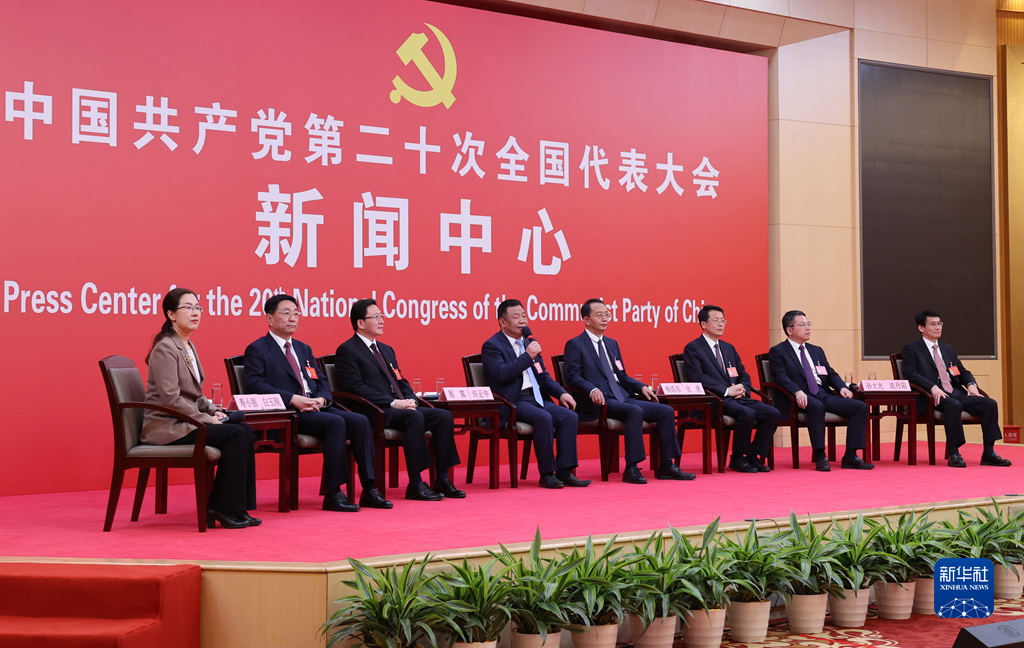 10月19日,中國共產(chǎn)黨第二十次全國代表大會新聞中心舉行集體采訪。山東、河南、湖北、湖南、廣東、廣西、海南代表團(tuán)新聞發(fā)言人出席,介紹代表團(tuán)學(xué)習(xí)討論二十大報(bào)告情況,并回答記者提問。新華社記者 陳建力 攝