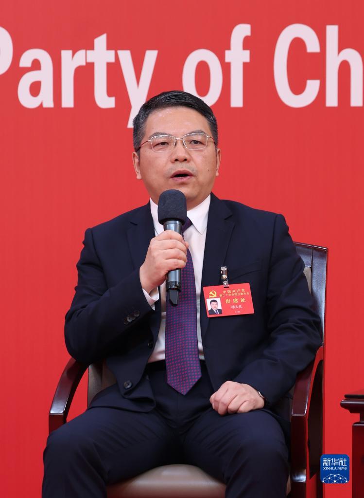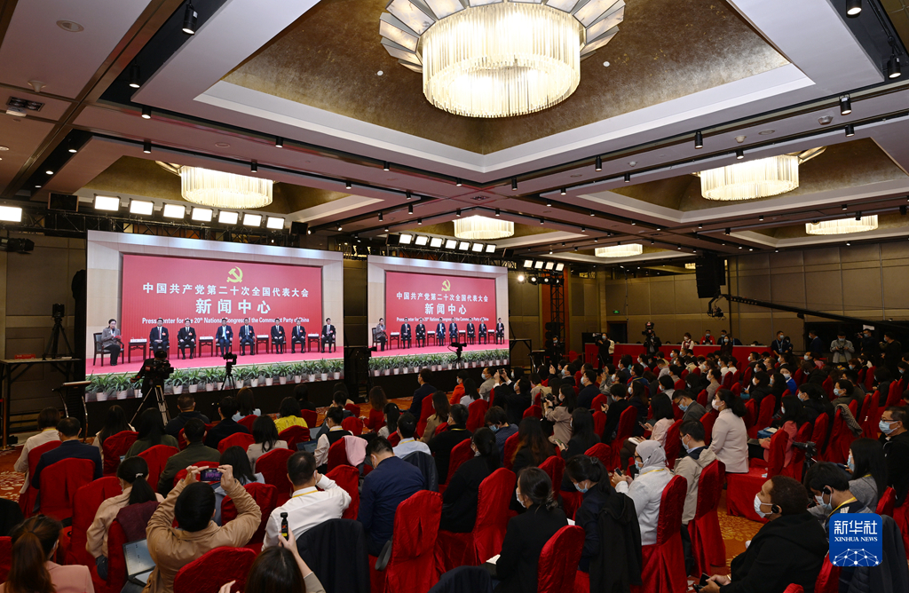 10月19日,中國共產(chǎn)黨第二十次全國代表大會新聞中心舉行集體采訪。山東、河南、湖北、湖南、廣東、廣西、海南代表團(tuán)新聞發(fā)言人出席,介紹代表團(tuán)學(xué)習(xí)討論二十大報(bào)告情況,并回答記者提問。新華社記者 張玉薇 攝
