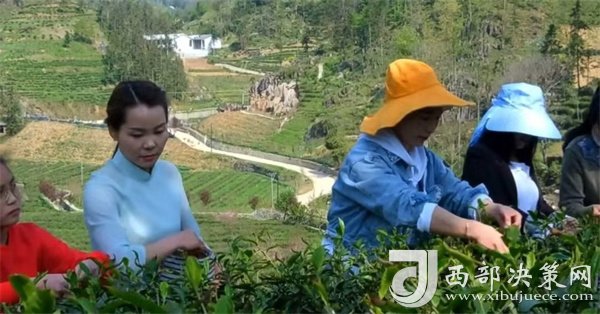 到公司茶園務(wù)工的村民摘茶場景之一