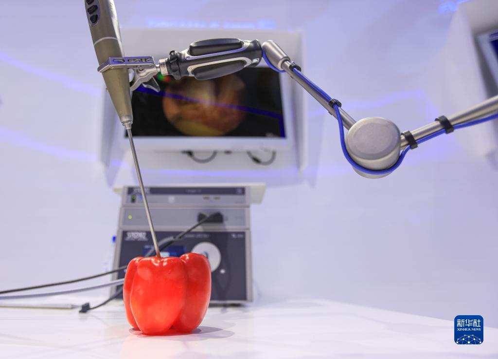 11月7日在第五屆進(jìn)博會(huì)德國(guó)卡爾史托斯展臺(tái)拍攝的電子內(nèi)窺鏡。新華社記者 李京 攝