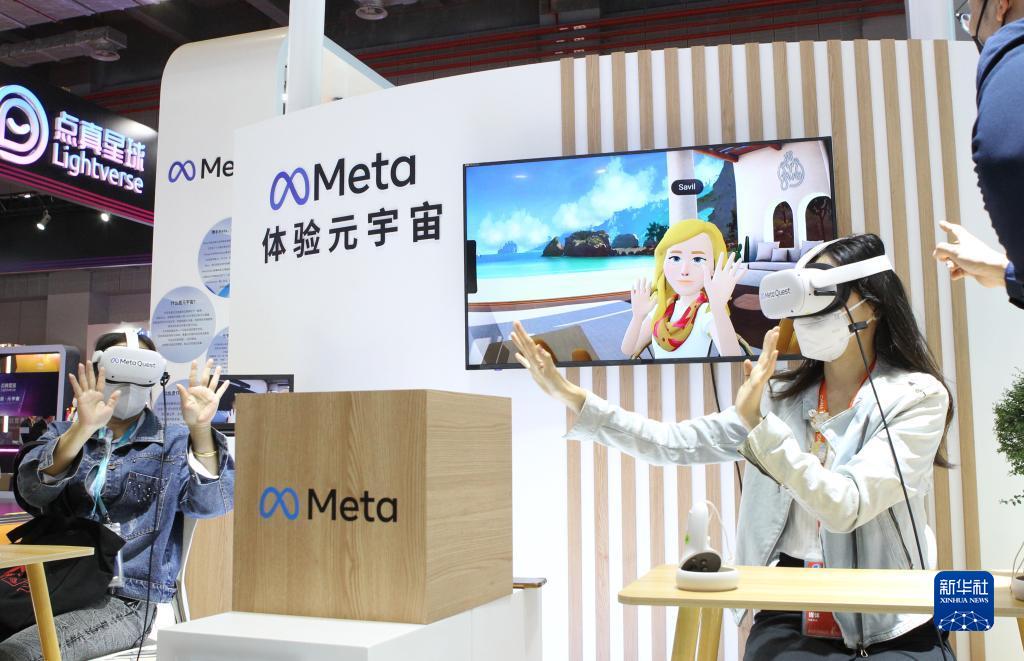 11月7日,在第五屆進(jìn)博會(huì)技術(shù)裝備展區(qū)的人工智能專區(qū),體驗(yàn)者借助VR頭戴設(shè)備感受在虛擬工作空間“隔空擊掌”。新華社記者 侯俊 攝