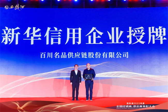 會上,新華社中國經(jīng)濟(jì)信息社為百川名品供應(yīng)鏈股份有限公司頒發(fā)了《新華信用平臺入駐企業(yè)證書》;新華絲路授予西鳳酒“外國人喜歡的中國品牌”榮譽(yù)獎杯和證書。