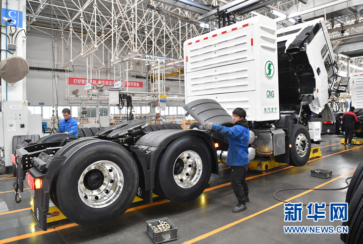 新華網西安2月23日電(史夢 張思思)工業(yè)機器人揮舞長臂,工人在生產線上緊張忙碌。在位于西安經開區(qū)涇渭新城的陜汽控股集團,總裝車間正馬力全開,每6分鐘就有一輛整車從這里下線。