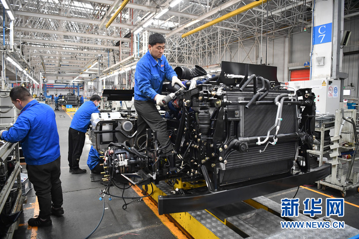 工人在陜汽控股集團重卡總裝車間裝配零件。 新華社記者 邵瑞 攝