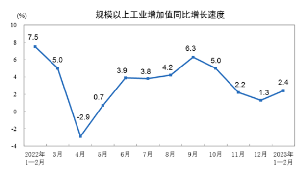 國家統(tǒng)計(jì)局3月15日發(fā)布數(shù)據(jù)顯示,今年前2個(gè)月,全國規(guī)模以上工業(yè)增加值同比增長(zhǎng)2.4%,比2022年12月份加快1.1個(gè)百分點(diǎn);兩年平均增長(zhǎng)4.9%。