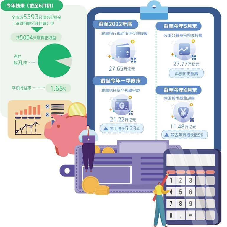 除上述兩類理財(cái)產(chǎn)品之外,公募基金也是投資者較為關(guān)注的一類理財(cái)產(chǎn)品。中國基金業(yè)協(xié)會公布的數(shù)據(jù)顯示,截至今年5月末,公募基金整體規(guī)模達(dá)27.77萬億元,再創(chuàng)歷史新高。