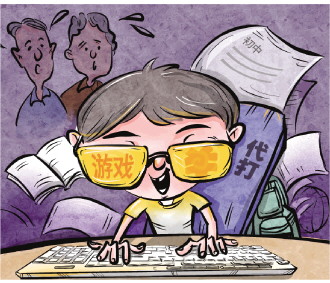 可好景不長,“雙雙”因為打游戲時間過長,學(xué)習(xí)成績一塌糊涂,經(jīng)常被老師拉去單獨談話。但她對老師的批評左耳朵進(jìn)右耳朵出,回家后仍是將書包一扔,熟練地啟動電腦開始打游戲。
