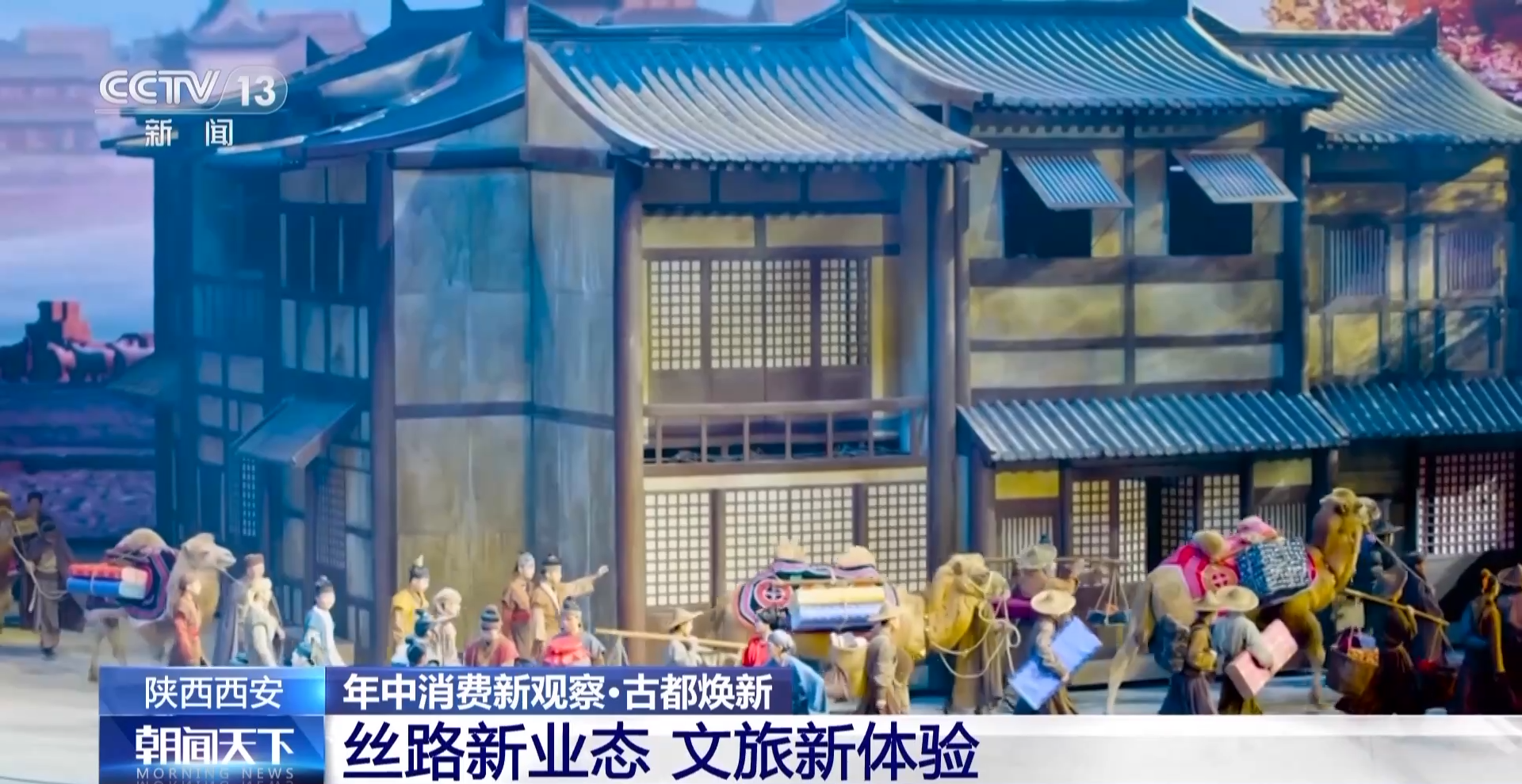 多元文化匯聚西安,帶來的不僅是進口商品消費的火熱,更有精神文化的滋養(yǎng)。臺上正在演繹的實景歌舞劇《駝鈴傳奇》,以盛唐為背景,講述了商貿(mào)駝隊勇敢開拓絲路的故事。通過光影虛實依次呈現(xiàn),伴隨驚心動魄的故事,讓觀眾大呼過癮。