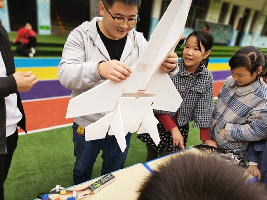 志愿者與孩子們一起制作航模飛機(jī)。受訪(fǎng)者供圖