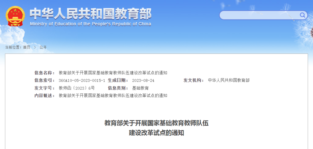 記者8月29日從教育部獲悉,教育部近日印發(fā)《教育部關于開展國家基礎教育教師隊伍建設改革試點的通知》,部署在上海市、山東省、青海省、福建省廈門市、湖南省常德市、黑龍江省黑河市嫩江市、浙江省溫州市甌海區(qū)、河南省商丘市永城市、廣西壯族自治區(qū)桂林市荔浦市、重慶市云陽縣等省、市、縣10個地區(qū)開展國家基礎教育教師隊伍建設改革試點。試點時間自通知印發(fā)之日起計算,周期3年。