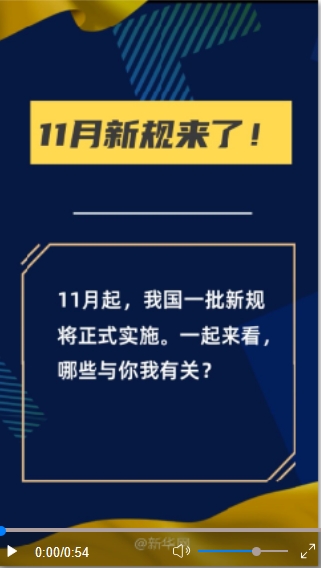 11月起,一批新規(guī)將正式實施。一起來看,哪些與你我有關?(文字來源:新華社 視頻剪輯:盧俊宇 終審:陳競超)