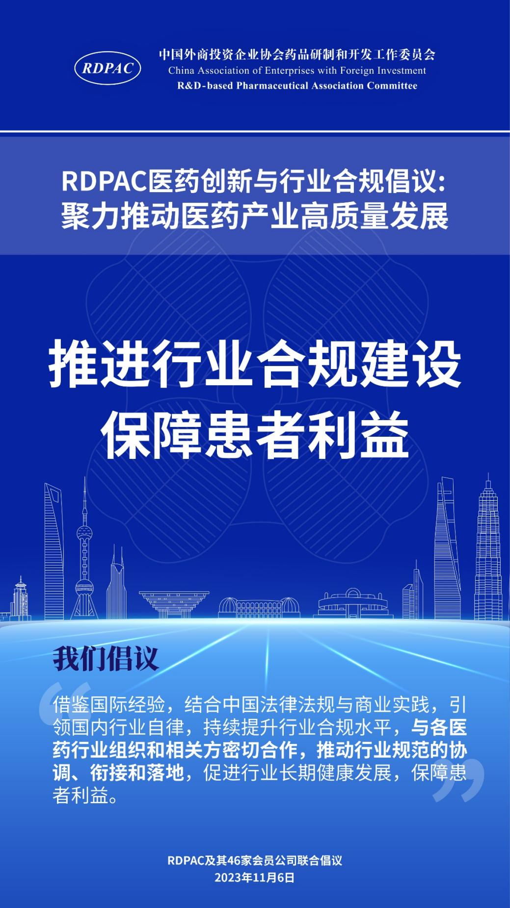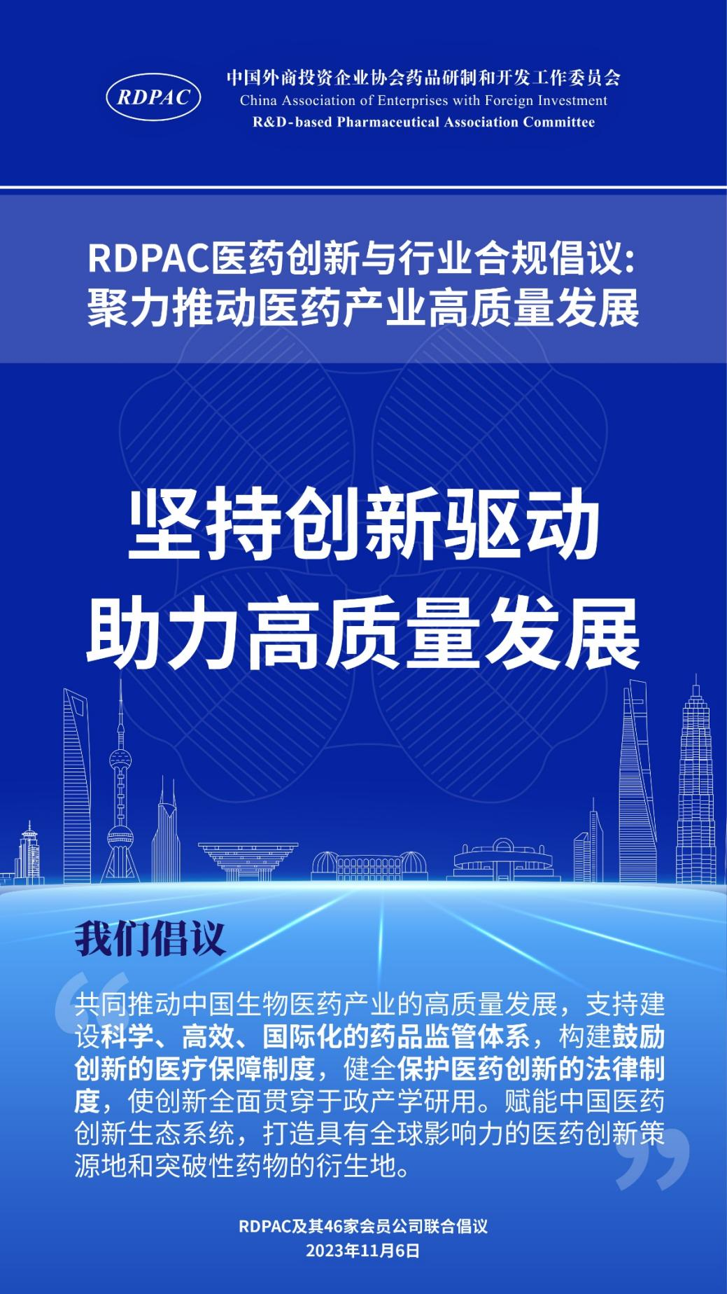 11月6日,中國外商投資企業(yè)協(xié)會藥品研制和開發(fā)工作委員會 (以下簡稱 “RDPAC”)及其成員公司在華負責人共同發(fā)起“RDPAC醫(yī)藥創(chuàng)新與行業(yè)合規(guī)倡議”,致力于打造充滿活力的醫(yī)藥創(chuàng)新生態(tài)系統(tǒng)、完善的行業(yè)合規(guī)體系,聚力推動中國醫(yī)藥產(chǎn)業(yè)的高質(zhì)量發(fā)展,建設健康中國。
