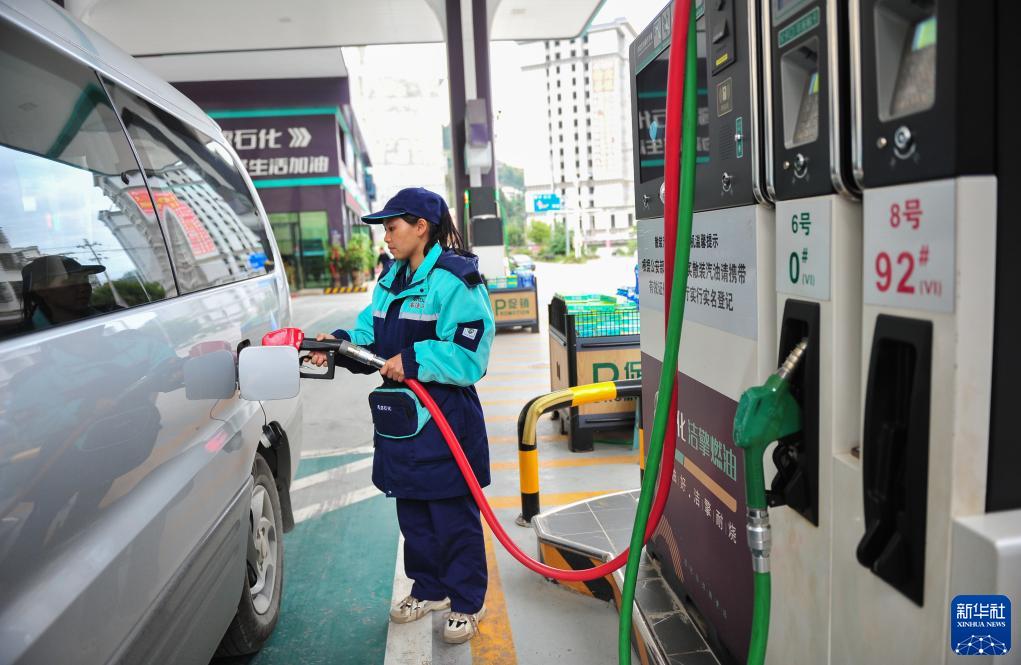 11月7日,貴州省從江縣一加油站工作人員在給汽車加油。新華社發(fā)(盧忠南 攝)