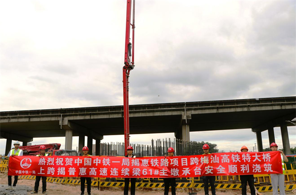 近日,中鐵一局一公司承建的揭惠鐵路站前工程2標(biāo)項(xiàng)目迎來新進(jìn)展,全線控制性工程跨梅汕高鐵特大橋上跨揭普惠高速(83+152+83)m連續(xù)梁61#主墩承臺(tái)暨項(xiàng)目首個(gè)單體積最大承臺(tái)安全順利澆筑完成,標(biāo)志著該橋梁工程取得了階段性進(jìn)展,為后續(xù)連續(xù)梁施工奠定了基礎(chǔ)。