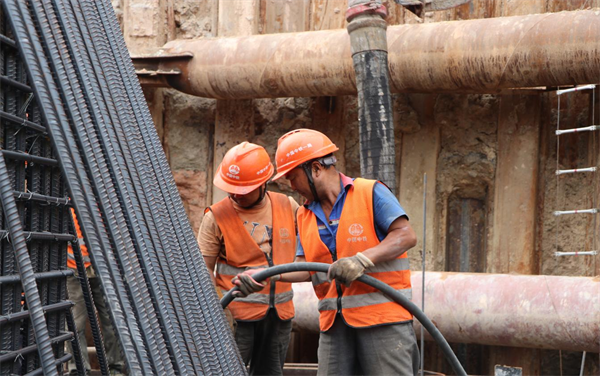 為確保本次混凝土澆筑施工安全順利完成,項(xiàng)目部集中組織現(xiàn)場管理人員和協(xié)作隊(duì)伍,對(duì)施工方案進(jìn)行詳細(xì)討論、學(xué)習(xí),總結(jié)前期施工經(jīng)驗(yàn),完善各工序銜接,對(duì)人員配置及分工進(jìn)行精細(xì)化部署,細(xì)化節(jié)點(diǎn)目標(biāo),明確責(zé)任。澆筑過程中,嚴(yán)格控制混凝土入模速度,緊盯混凝土振搗質(zhì)量,專人盯控,確保了61#主墩承臺(tái)的安全順利澆筑。