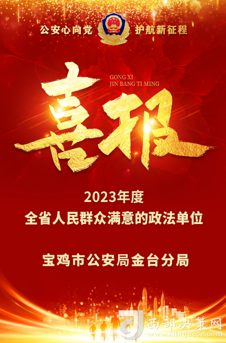 西部決策網(wǎng)訊(記者帥華鋒 通訊員 楊曉毅)1月21日,從省委政法工作會議上傳來喜訊,寶雞市金臺公安分局榮獲“全省人民群眾滿意的政法單位”,這是全市唯一獲此殊榮的縣(區(qū))級公安機(jī)關(guān)。