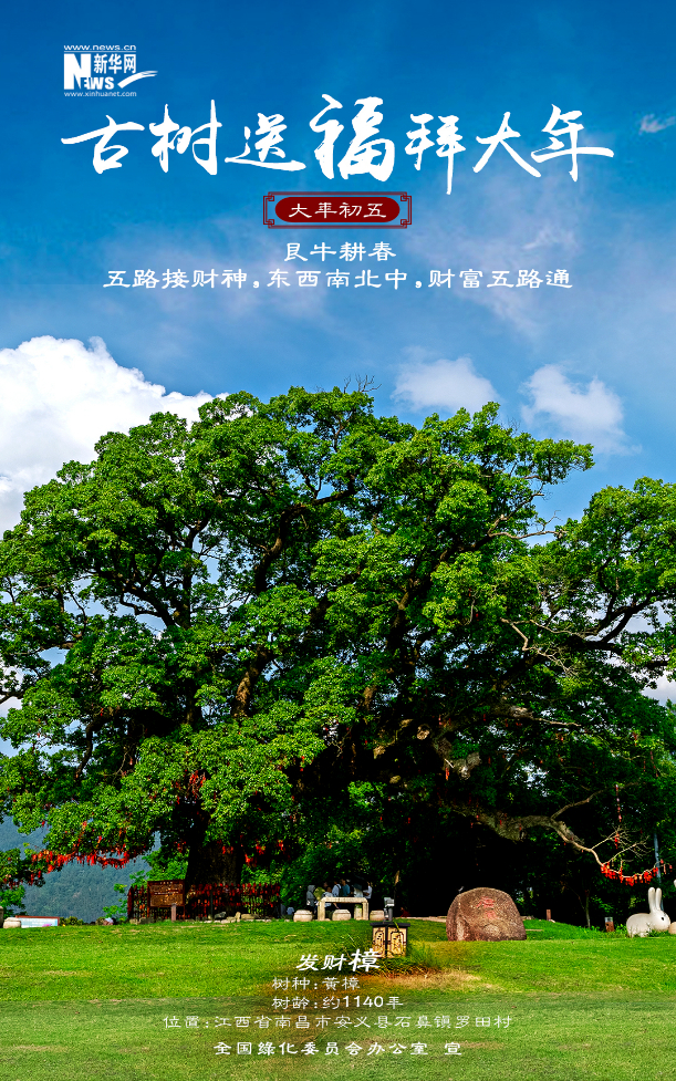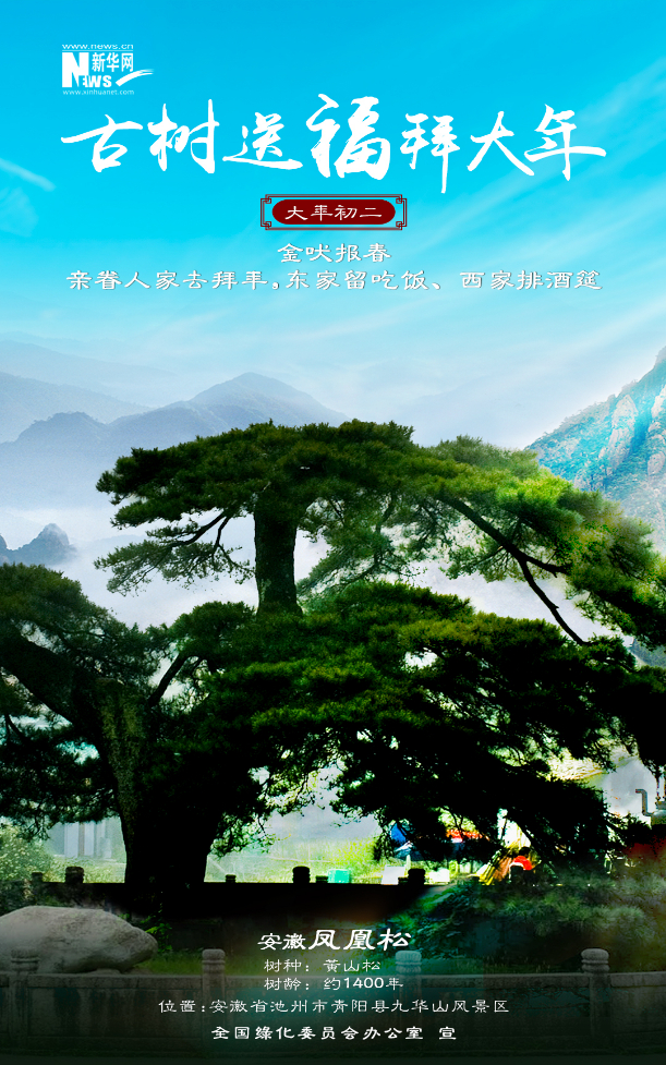 今年春節(jié),新華網(wǎng)聯(lián)合全國綠化委員會(huì)辦公室,策劃推出“古樹送福拜大年”系列海報(bào)12張,選取寓意喜樂吉祥、文化底蘊(yùn)深厚、景觀自然絕美的古樹名木,結(jié)合中國春節(jié)習(xí)俗,給廣大網(wǎng)友拜年啦!