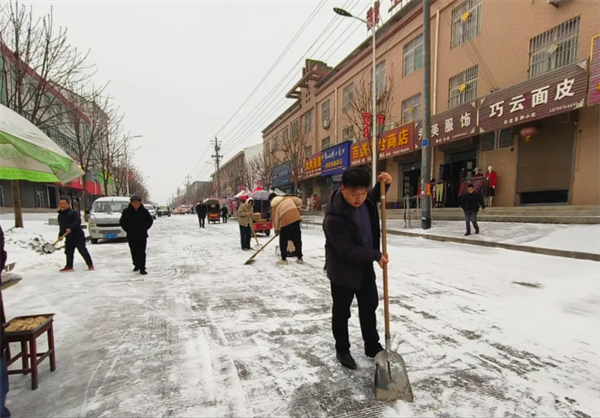 以雪為令,疏通道路。領導班子成員在崗指揮、對鎮(zhèn)區(qū)內路段包片開展掃雪鏟冰,同時督促商戶履行“門前三包”區(qū)域積雪清掃職責。鎮(zhèn)村黨員干部紛紛行動,主動參與到掃雪鏟冰活動中,清理主要道路積雪,方便群眾出行。