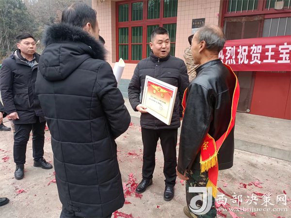 西部決策網(wǎng)訊 春節(jié)前夕,勉縣退役軍人事務(wù)局、勉縣定軍山鎮(zhèn)武裝部一行到轄區(qū)榮立三等功的現(xiàn)役軍人王寶山家中,向其家屬送上王寶山的立功喜報(bào)和慰問(wèn)金,對(duì)王寶山在部隊(duì)里取得的優(yōu)異成績(jī)表示祝賀。