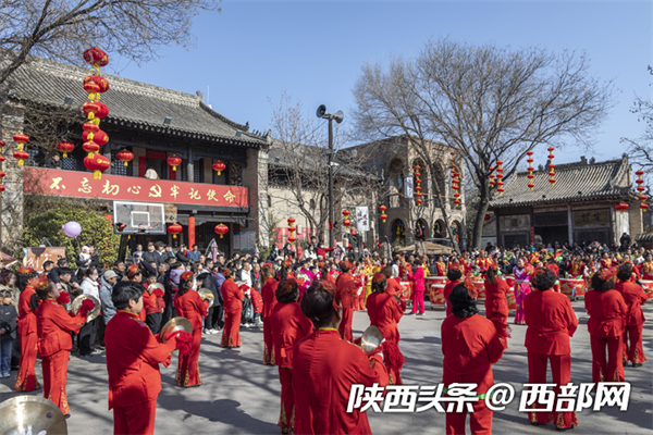 春節(jié)期間,袁家村村民演出節(jié)目歡迎各地游客