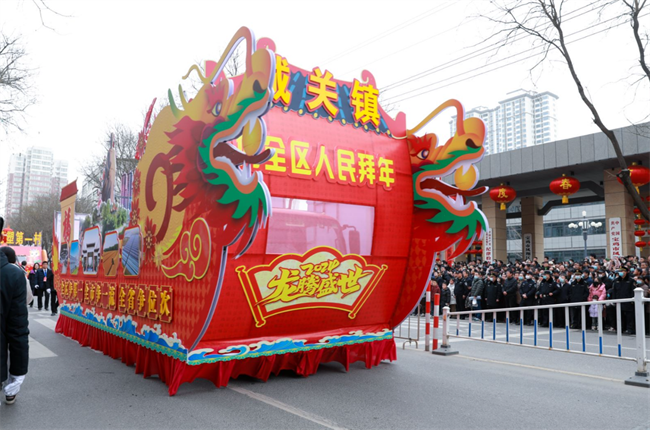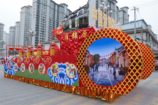 “中國泥塑第一村”彩車:寓意“龍騰四海,福耀城關(guān)”,展現(xiàn)城關(guān)鎮(zhèn)敢為人先、拼搏奮進(jìn)的精氣神。