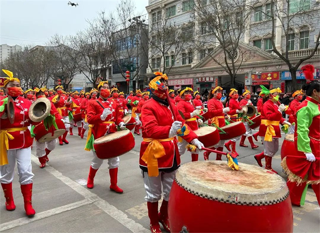 西部決策網(wǎng)訊(記者劉玉 韓宗憲 通訊員 楊曉丹 田耀婷)社火展演賀新春,鑼鼓喧天拜大年。2月19日,農(nóng)歷正月初十,寶雞市鳳翔區(qū)城關(guān)鎮(zhèn)為全區(qū)群眾送上了一場(chǎng)熱鬧喜慶的社火表演,用最具年味的傳統(tǒng)民俗向全區(qū)群眾送上了節(jié)日的問候。