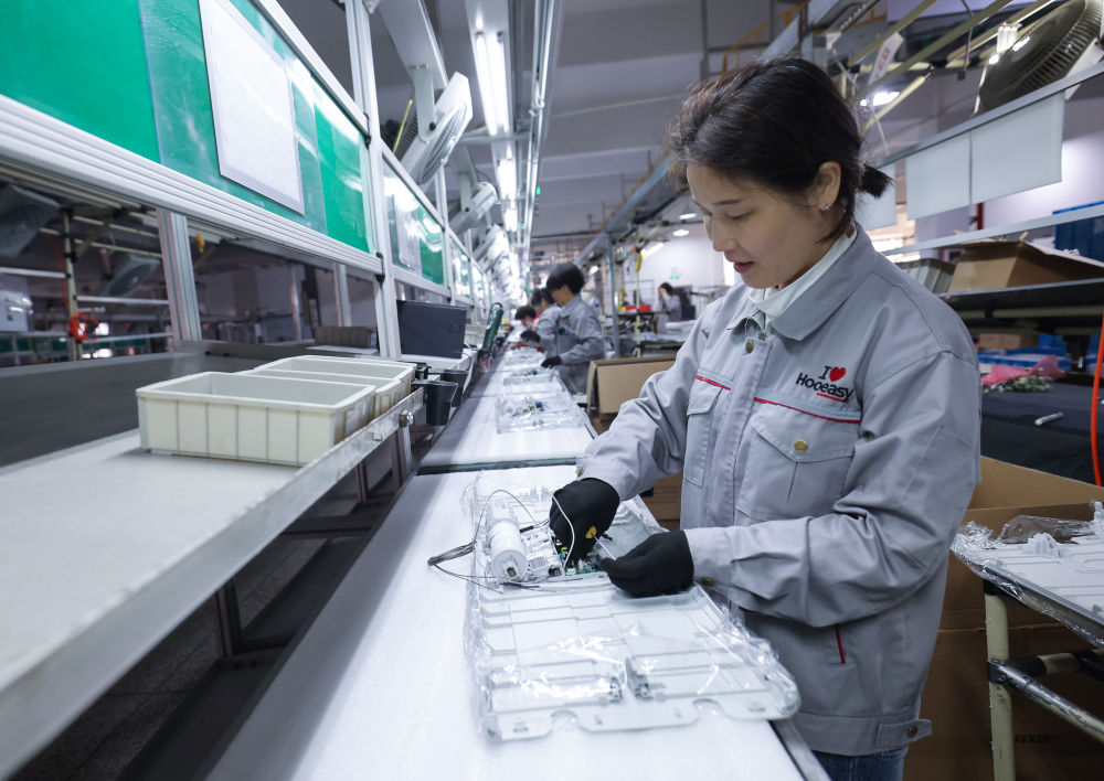 2月19日,工人在位于浙江金華市金義新區(qū)的浙江好易點科技股份有限公司車間內組裝智能晾衣機。據介紹,該公司已形成年產智能晾衣機100萬套生產能力。新華社記者 徐昱 攝