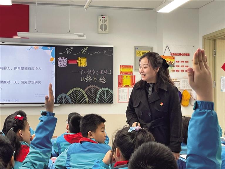 “開學(xué)前,曲江二小教育集團(tuán)總校長閻利娟就確定了本學(xué)期‘開學(xué)第一課’的主題——個人領(lǐng)導(dǎo)力課程之‘以終為始’。這也是學(xué)校向全體師生推薦的必讀圖書《杰出青少年的七個習(xí)慣》中提出的第二個習(xí)慣。希望同學(xué)們在新學(xué)期,結(jié)合積極心理學(xué)中的二十四品格,設(shè)置新起點、新目標(biāo),以積極向上的心態(tài)規(guī)劃未來,健康快樂成長。”曲江七小大隊輔導(dǎo)員段紅玉告訴記者。