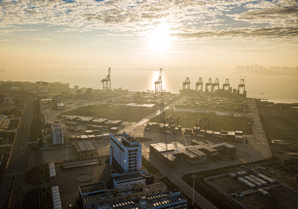 2024年1月1日在海南省洋浦經濟開發(fā)區(qū)拍攝的海南自貿港集裝箱航運樞紐——洋浦國際集裝箱碼頭(無人機照片)。新華社記者 蒲曉旭 攝