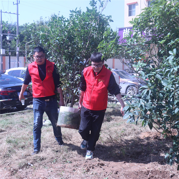 經(jīng)過一上午緊張的勞動,新培的50余顆桂花樹苗在春日里展現(xiàn)出勃勃生機(jī),原本光禿的地段已經(jīng)穿上了綠色的衣裳!