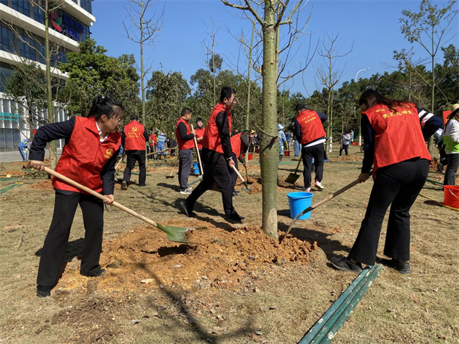 中鐵一局一公司黨委副書(shū)記、紀(jì)委書(shū)記朱懷勇帶隊(duì),公司本部和番禺區(qū)在建項(xiàng)目的13名黨員代表參加了本次活動(dòng),他們統(tǒng)一著裝,手持鐵鍬、水桶等勞動(dòng)工具,沐浴春日暖陽(yáng),滿懷熱情希望,認(rèn)領(lǐng)了10棵象征著堅(jiān)韌、勇氣、智慧和興旺的銀杏和香樟,栽種下中鐵一局一公司在廣東番禺屬地化發(fā)展的夢(mèng)想和希望。