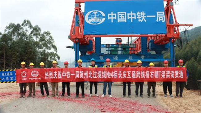 西部決策網訊 3月22日,中鐵一局三公司賀州北過境線項目長慶互通跨線橋右幅T梁架設順利貫通。